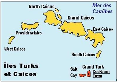 Les îles Turques-et-Caïques (en anglais: Turks-et-Caïcos) forment un archipel de 497 km² dans la mer des Caraïbes, situé au sud des Bahamas, au nord d'Haïti et de la République dominicaine et à l'est de Cuba.