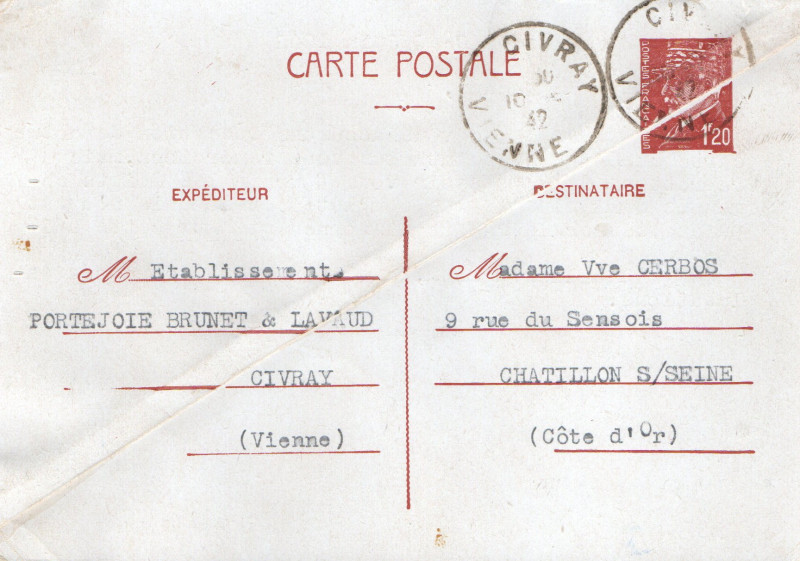 Carte postale 1 F 20 Pétain imprimée sur raccord